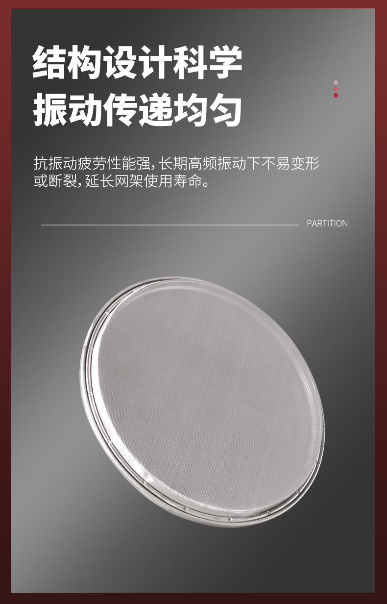? 設(shè)計特點:篩框的設(shè)計需考慮其強度和剛度,以承受振動電機產(chǎn)生的振動力,避免在運行過程中出現(xiàn)變形或損壞。其結(jié)構(gòu)要便于篩網(wǎng)的安裝和更換,通常采用子母式網(wǎng)架設(shè)計,換網(wǎng)方便,可在 3-5 分鐘內(nèi)完成。